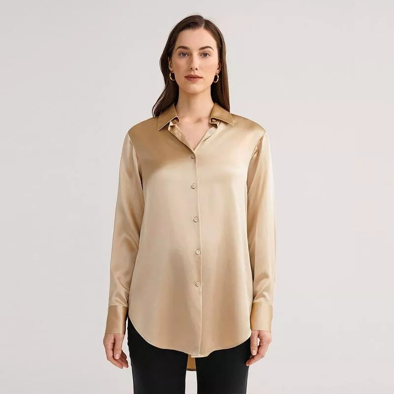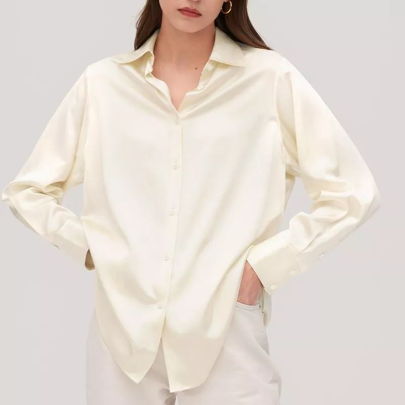 Make a statement with our 22 Momme Silk Oversized Blouse. Its unparalleled quality, versatile style, and comfortable fit make it a must-have in any fashion-conscious woman’s wardrobe. Don’t just dress; adorn yourself in luxury and confidence. Shop now and experience the perfect blend of style, comfort, and elegance.