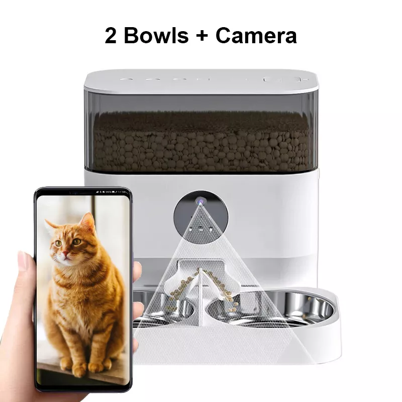5L Smart WiFi Pet Feeder with Double Bowl & Video Camera for Multiple Pets