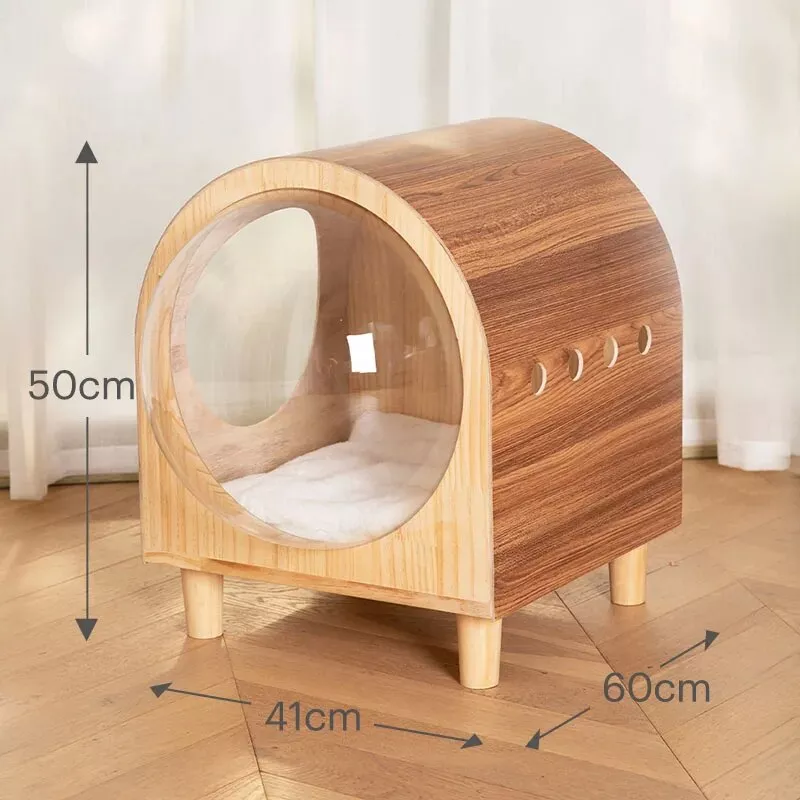 Aside from its elegant design and premium materials, our Wooden Space Capsule Cat Bed is special because it provides a unique blend of comfort, privacy, and style not found in other cat beds. Its space capsule design is not only visually appealing but also functional, offering a comforting enclosure for cats who crave a sense of security.