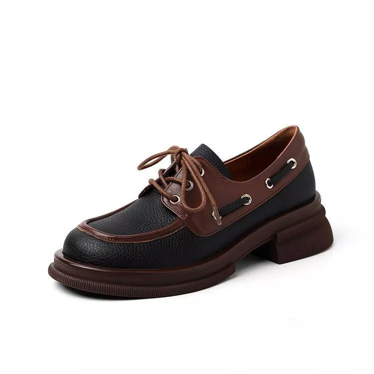 Embrace the perfect blend of style, comfort, and durability. Our Chic Mixed Color Lace-Up Loafers are more than just shoes—they are a versatile accessory that will elevate your wardrobe. Don’t miss out on the opportunity to own a pair of these unique and comfortable pumps. Order now and step into a world of comfort and style that is uniquely yours.