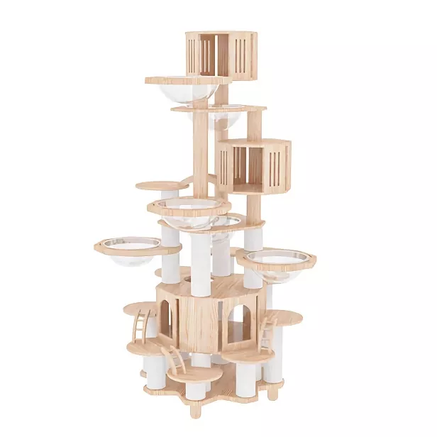 Our cat climbing frame is more than just a piece of pet furniture; it’s a comprehensive playhouse designed with your cat’s happiness in mind. The five layers and above structure offer ample space for climbing, scratching, and lounging. From the majestic Rainbow Bridge to the solid wood construction, every detail is crafted for durability and appeal. Shipped conveniently via rail and sea, this cat tree arrives ready to enchant your pet.