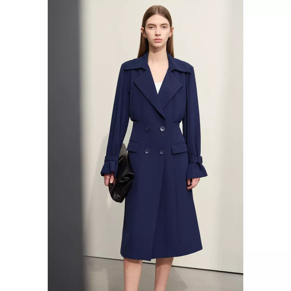 • Flattering Double-breasted Closure: Offers both style and versatility, ensuring a snug fit that accentuates the waist.