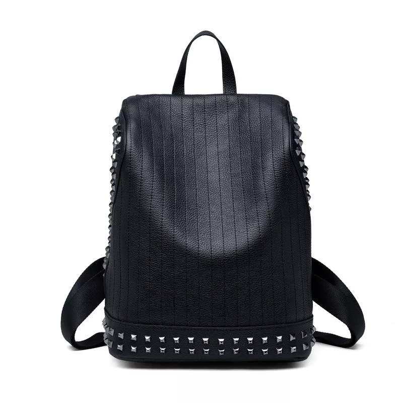 Genuine Leather Stylish Backpack with Rivet Design