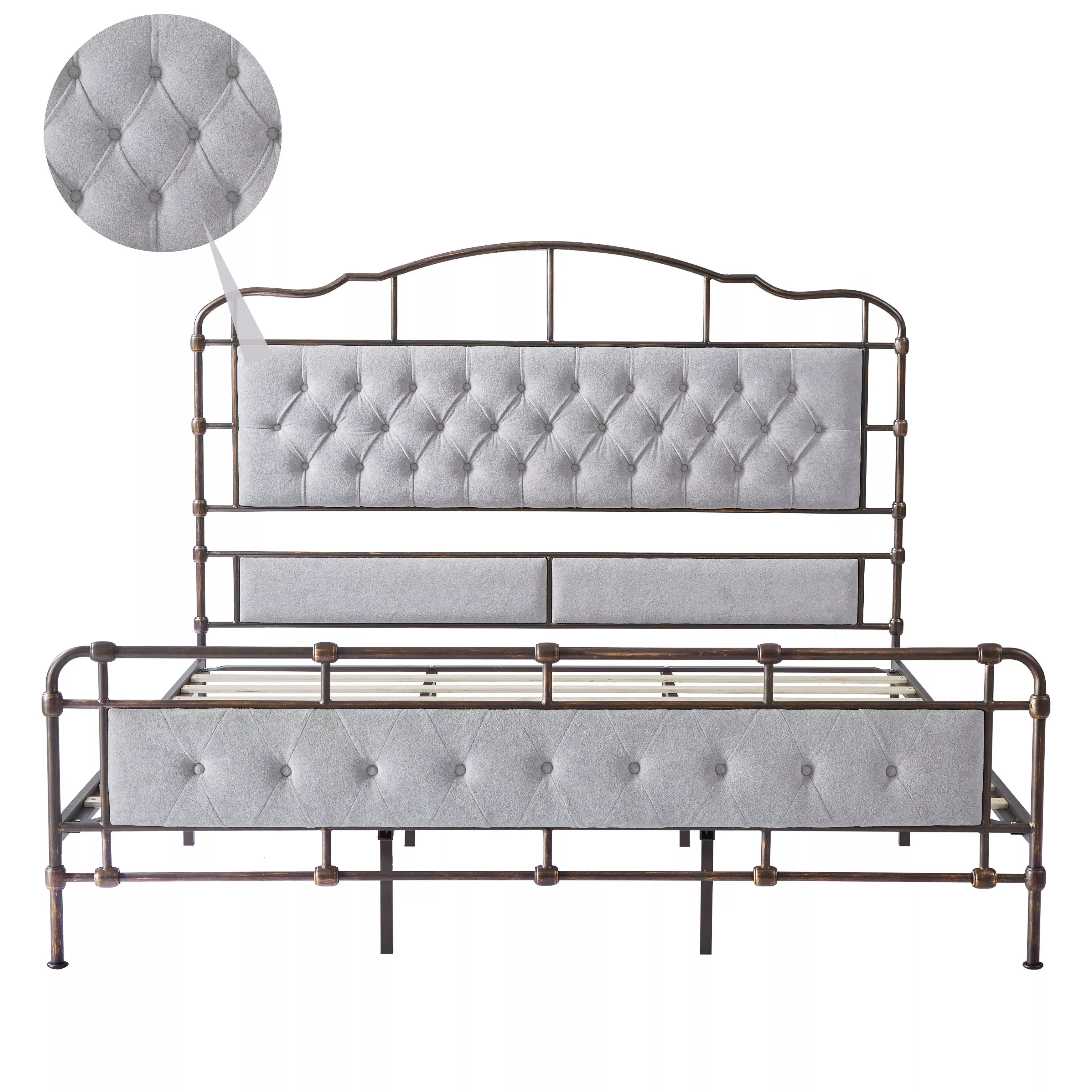Luxurious Velvet & Metal Queen/King Bed: Modern Morocco Design, Easy Assembly, Noise-Free