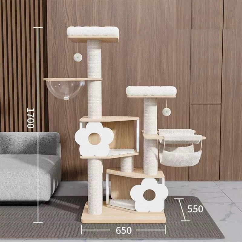 Introduce your beloved cat to a world of luxury and comfort with our Luxury Solid Wood Cat Tower. Designed with your pet’s play, exercise, and relaxation needs in mind, this exquisite piece of cat furniture combines functionality with style, making it a perfect addition to any home. Crafted from high-quality wood, this climbing frame stands out not only for its durability but also for its eco-friendly nature, ensuring a safe environment for your pet and family.