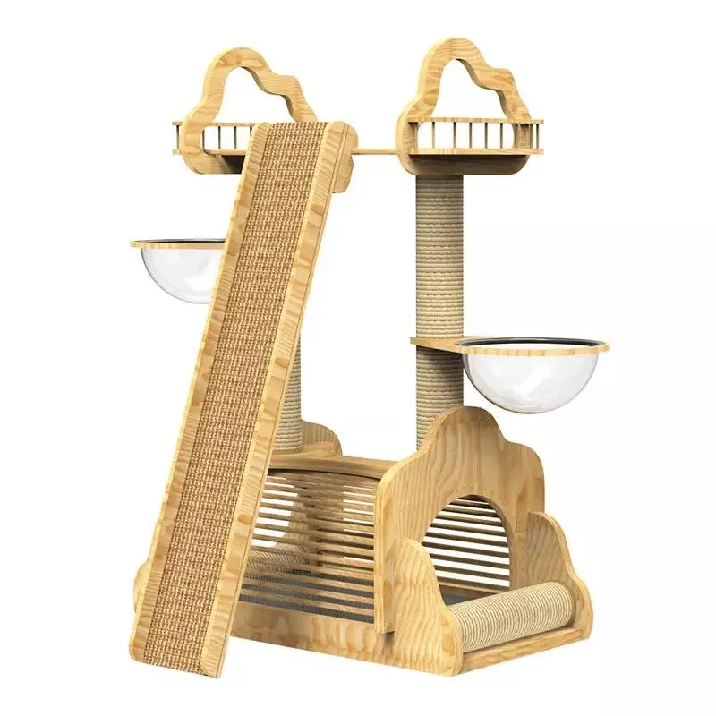 Luxury Solid Wood Cat Tree with Sisal Scratching Posts