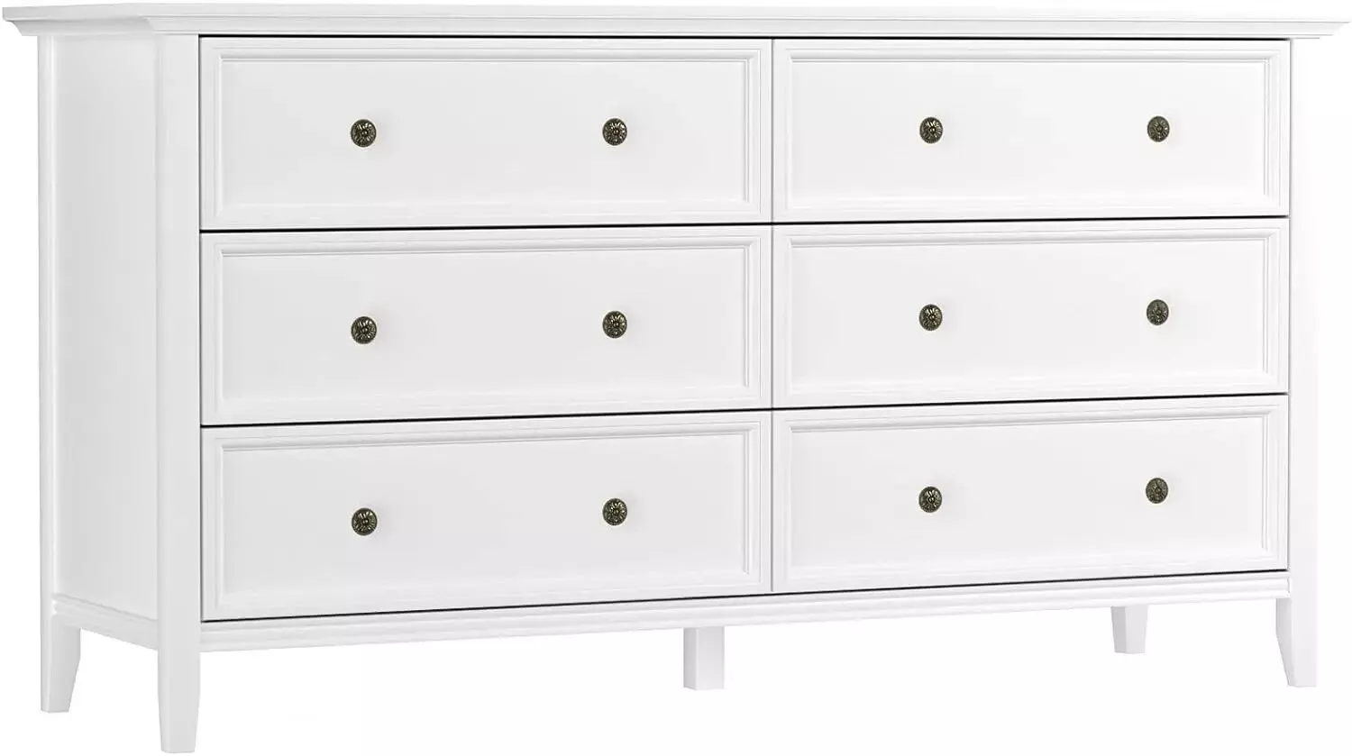 Modern 6-Drawer White Solid Wood Dresser – Elegant, Freestanding Chest for Bedroom, Living Room, and Nursery