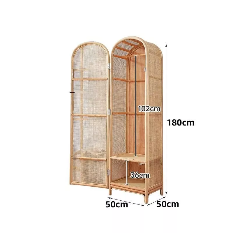 Our wardrobe stands out for its unique blend of natural rattan material and modern design. The plant rattan not only adds a touch of nature to your space but also promises durability and strength. Unlike bulky wardrobes, our single-door design is space-efficient, making it perfect for small rooms or apartments. The vertical hinged door offers ease of use, and the removable feature adds a layer of versatility, allowing you to customize the wardrobe to your changing needs.