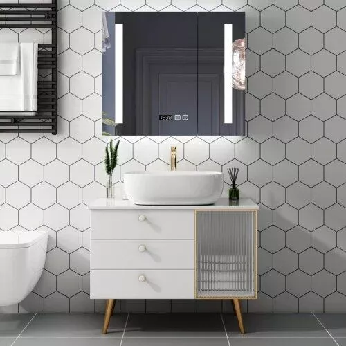 Whether you’re starting your day or unwinding in the evening, this vanity set is your perfect companion. It enhances your bathroom’s ambiance, making it ideal for both hectic mornings and relaxing evenings. Its modern style fits seamlessly into any bathroom, be it a master en suite or a guest bathroom, providing a touch of luxury in every use.