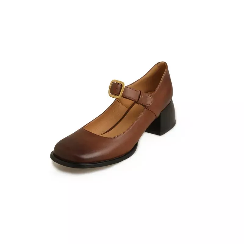 Retro Square Toe Mary Jane Pumps | Casual Handmade Leather Shoes with Chunky Heel