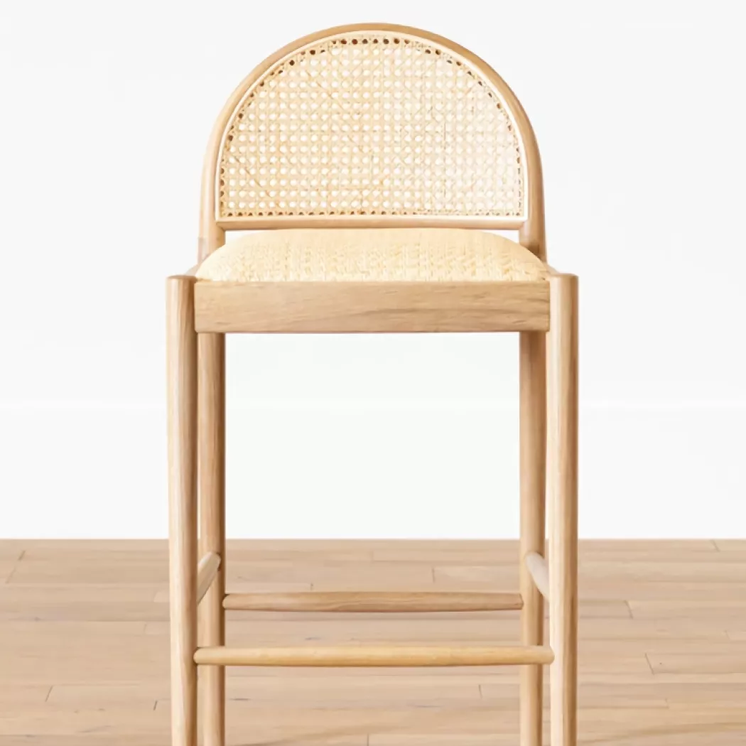 Crafted with meticulous attention to detail, this bar stool features a robust solid wood frame, ensuring durability and stability. The natural wood grain finish adds a touch of warmth and rustic charm. The seat and backrest are adorned with finely woven rattan, creating a breezy, laid-back vibe that’s both stylish and inviting. The combination of these materials not only exudes sophistication but also provides a comfortable and supportive seating experience.