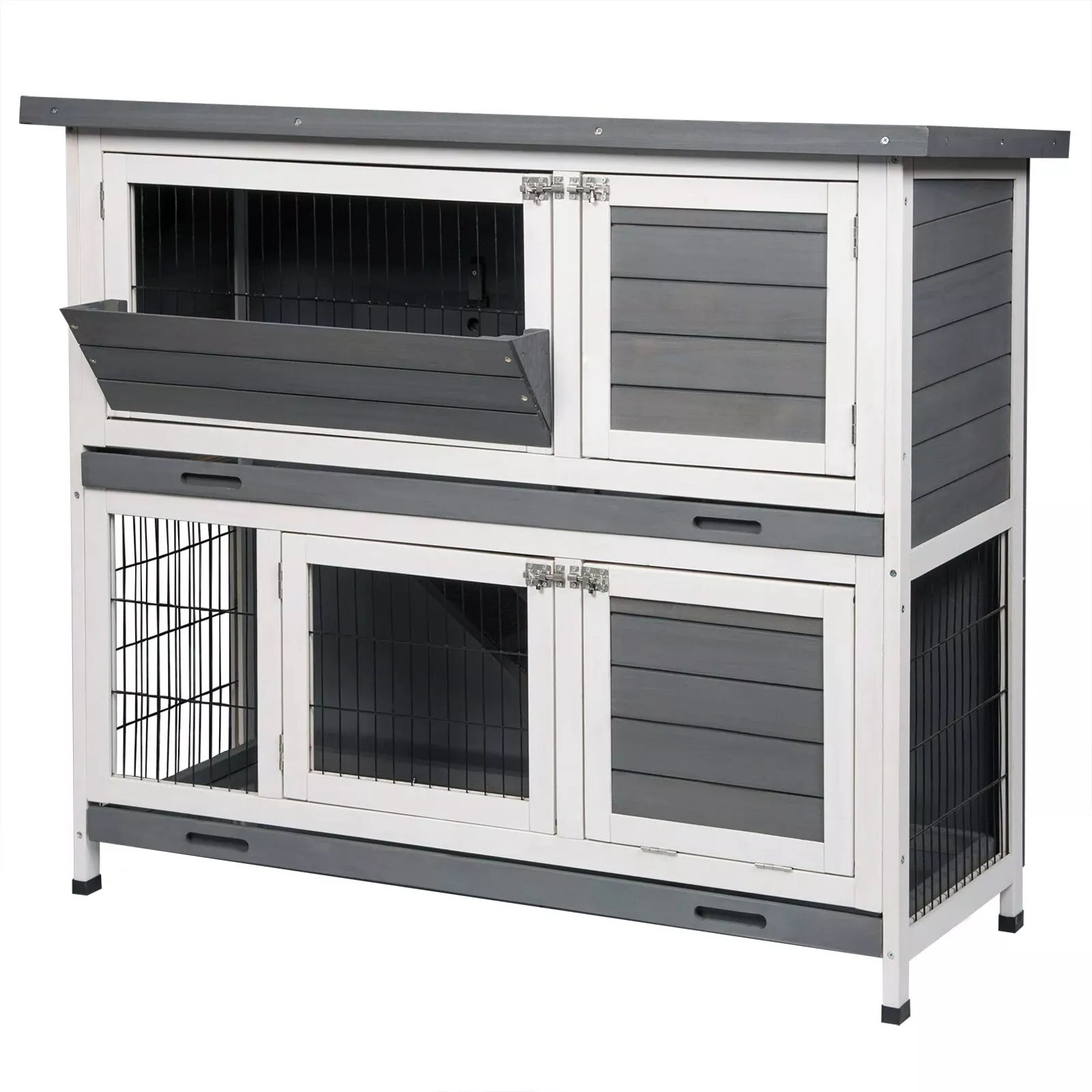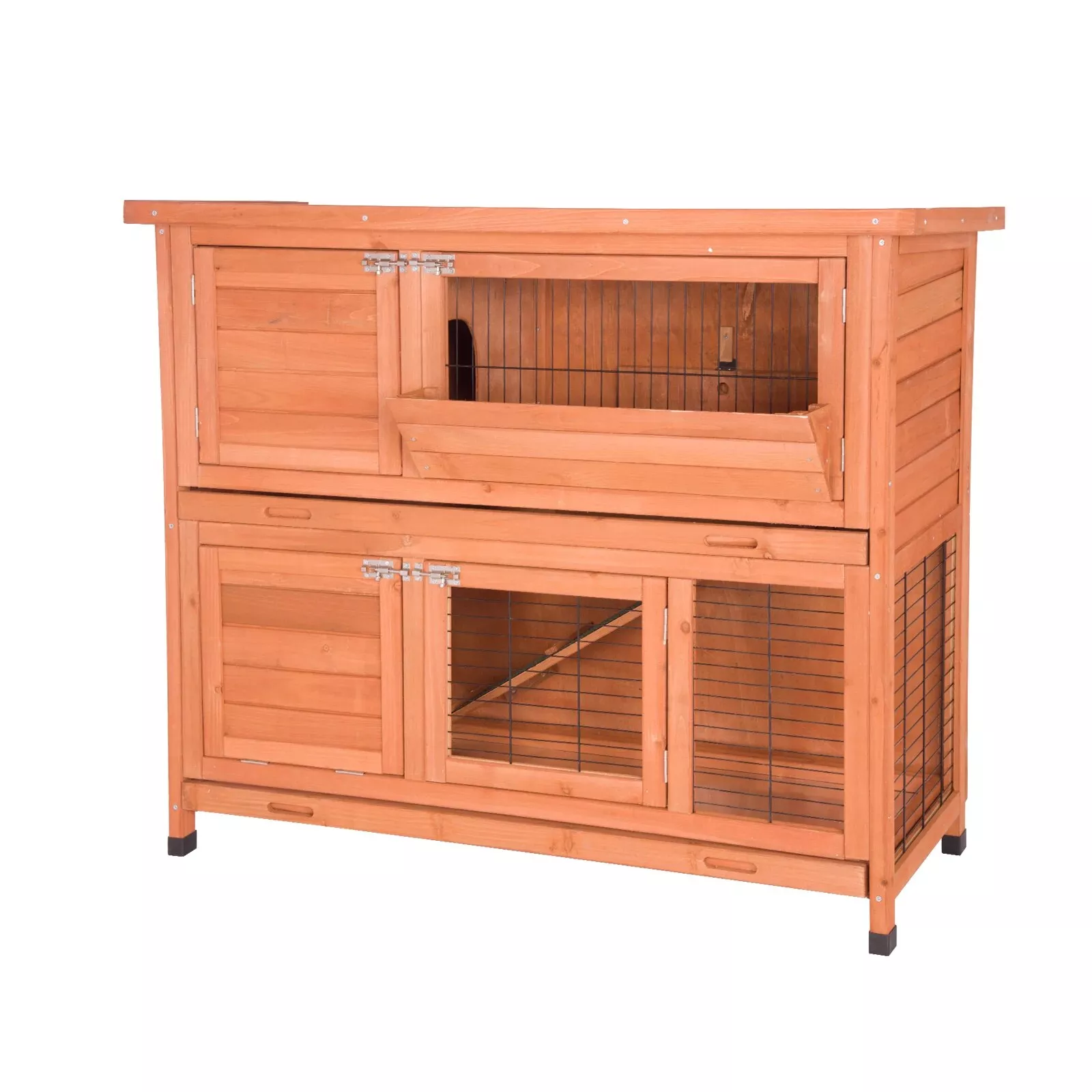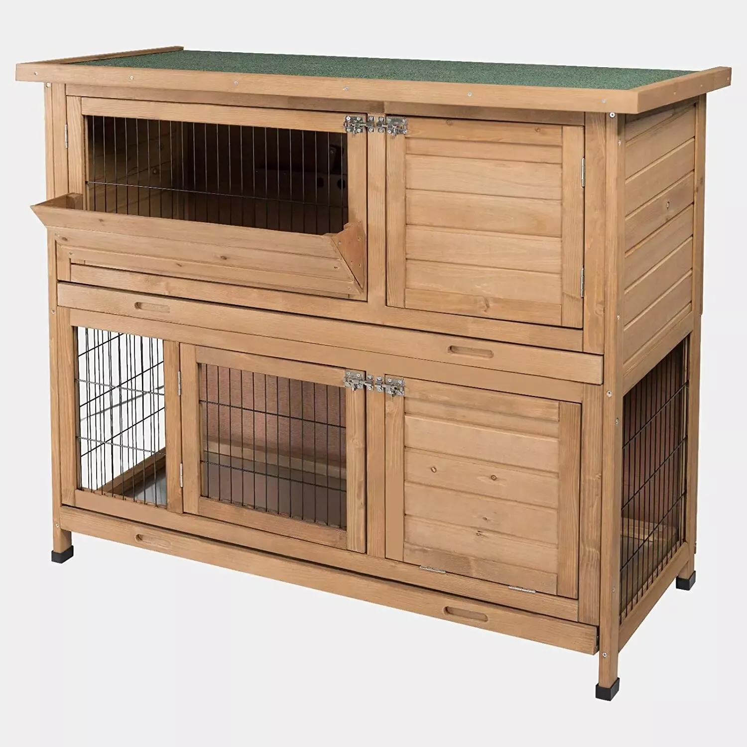 • Spacious Living Area: With two levels connected by a ramp, your pet has ample space to explore, rest, and play. The inclusion of a wooden trough makes feeding times convenient and mess-free.