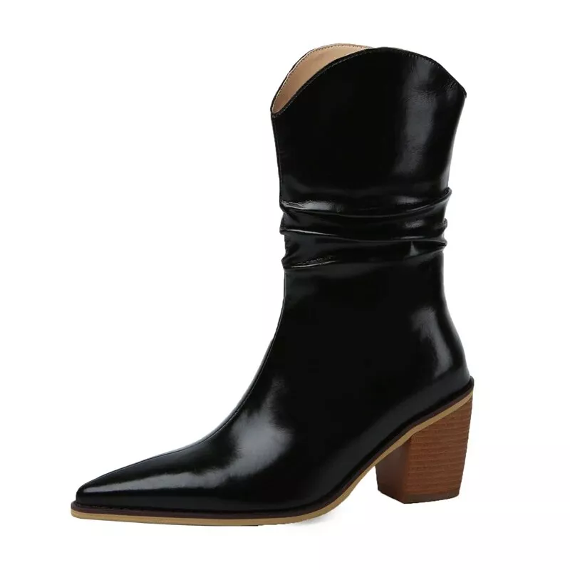 Step into the season with style and comfort with our latest Autumn Winter Collection. These Thick High Heels and Slip-On Mid-Calf Boots are the epitome of luxury and sophistication, designed for the modern woman who values both fashion and functionality. Crafted from premium genuine cow leather, these boots offer durability and a soft touch, ensuring you stand out in every crowd.