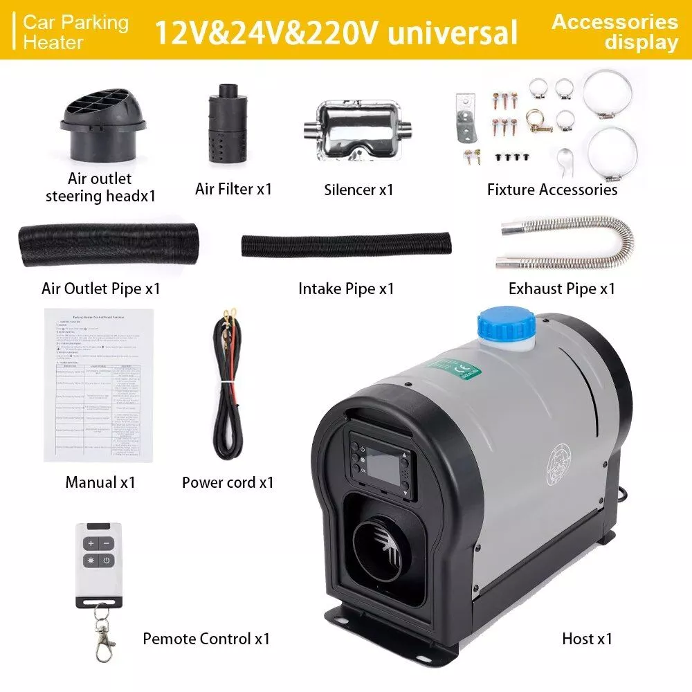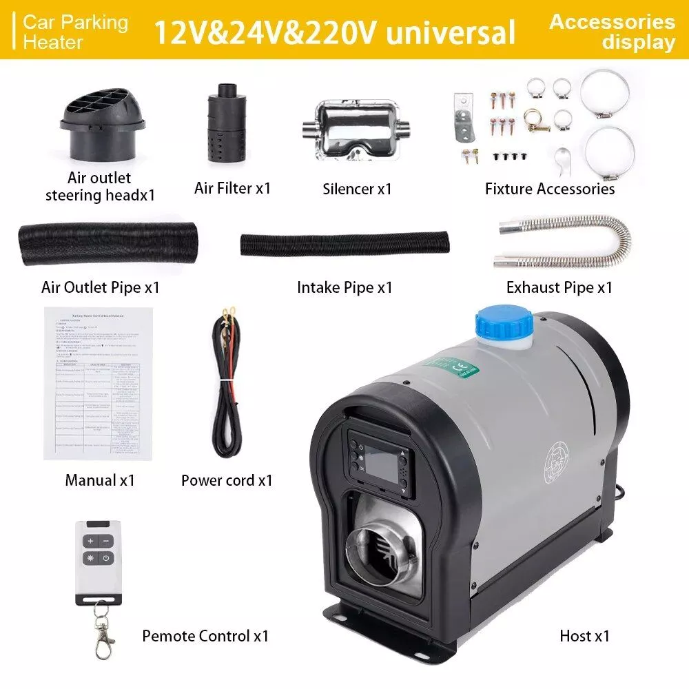 Wave goodbye to chilly mornings and foggy windows with our Universal 3-in-1 Diesel Parking Heater. Designed for efficiency, this heater transforms your vehicle into a cozy sanctuary within minutes. It’s not just a heater; it’s your companion for those cold days and nights, ensuring you stay warm and comfortable wherever you are.