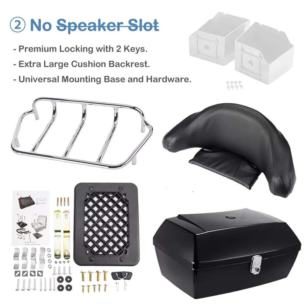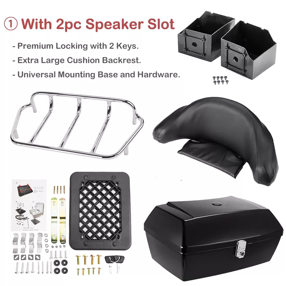 What sets this trunk apart is its blend of functionality and style. The sleek gloss black finish complements any motorcycle, and the additional LED feature not only looks great but also enhances safety. The choice between a model with speaker slots and one without allows for customization based on your preferences. This trunk isn’t just a storage solution; it’s an upgrade to your motorcycle’s functionality and aesthetics.