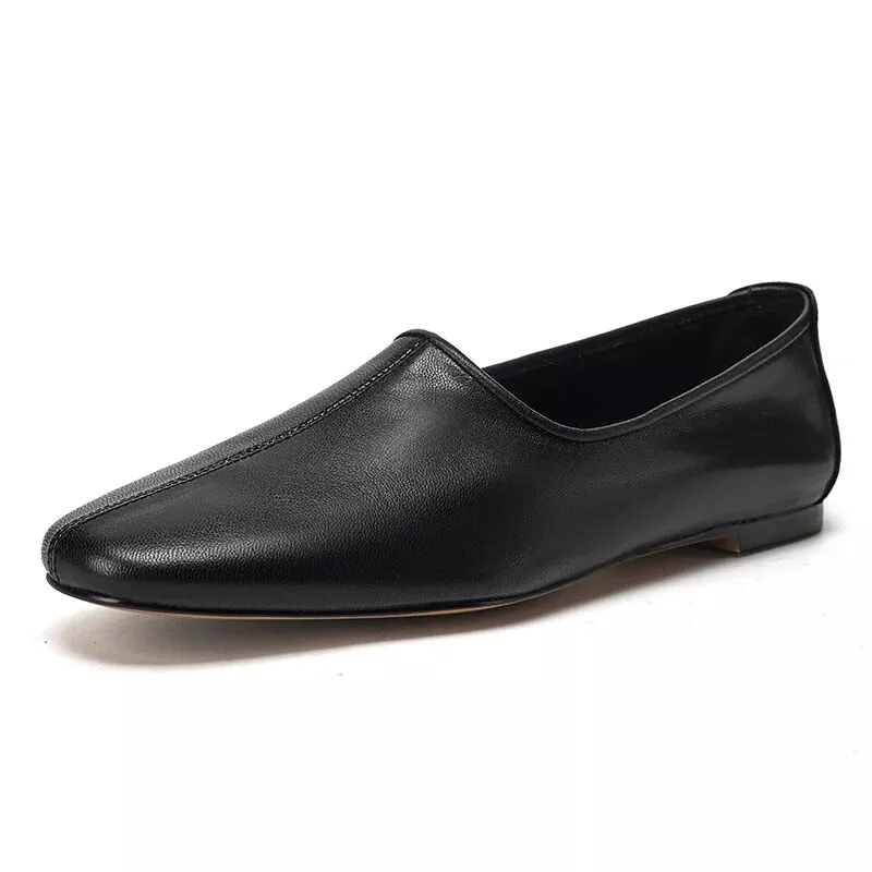 Women’s Low Heel Leather Pumps: Square Toe Flats for Spring & Autumn